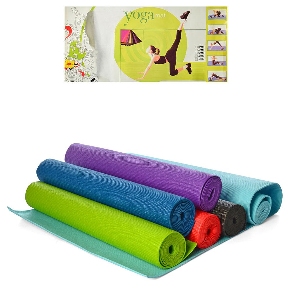 Килимок для йоги (173-61см, товщина 3мм, ПВХ, мікс видів) MS 1846-2-1 | Йогомат