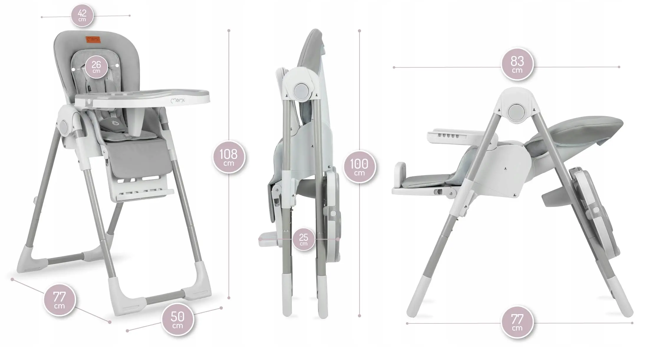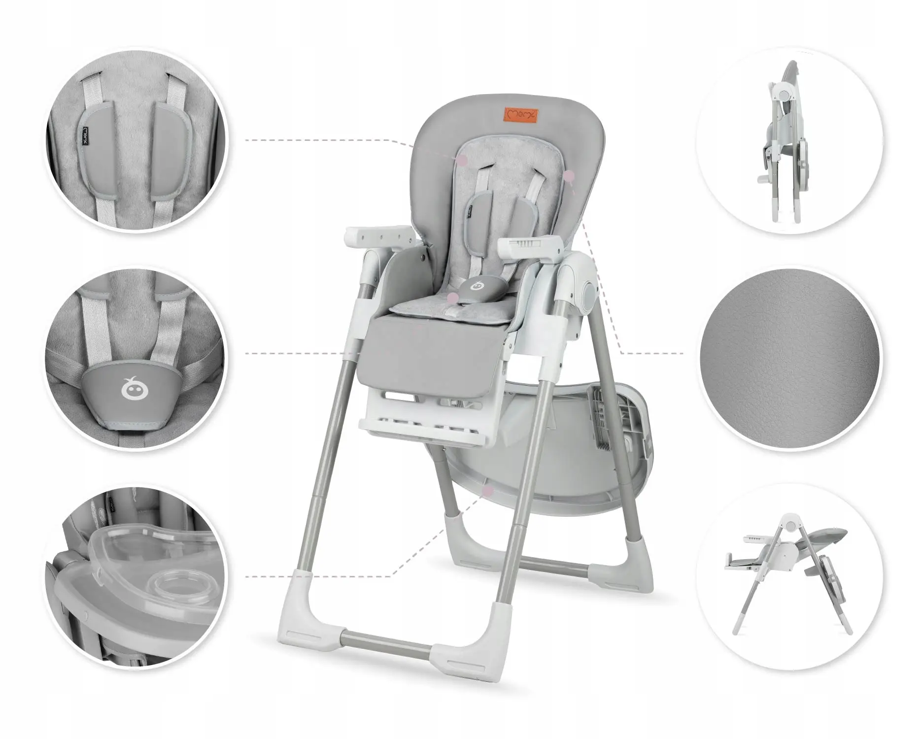 Стільчик для годування MoMi GWAJU (складний, від 6 місяців до 3 років, регулюється спинка) Light gray